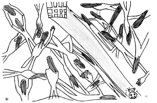 Monstre hideux qui mâche on ne sait quoi dans l'ombre